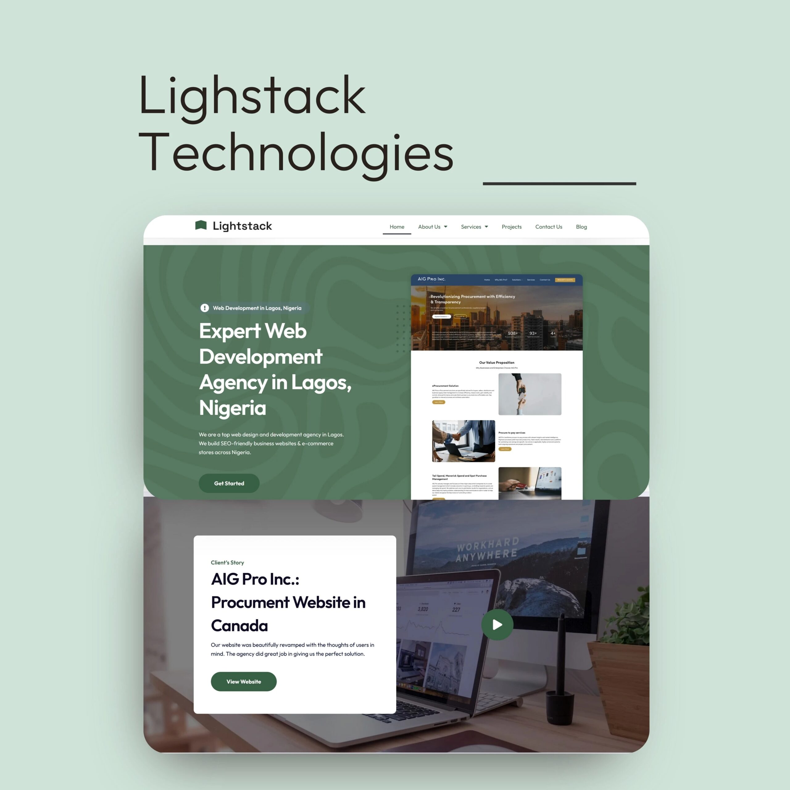 Lightstack needed a dynamic agency site to showcase their web development capabilities (school systems, web dev, SEO, projects) and client successes (i.e., AIG Pro). The goal was to establish expertise and attract potential clients.